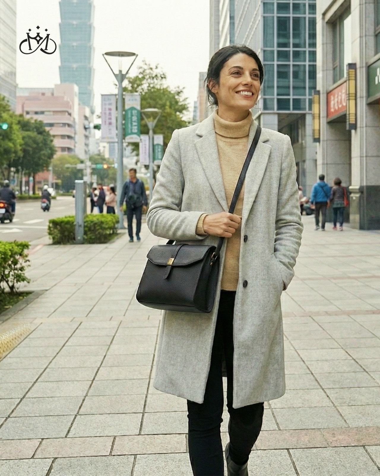 ← 台北街頭實拍,灰大衣 + 黑色斜背包超有型, 商務滿分穿搭推薦!
